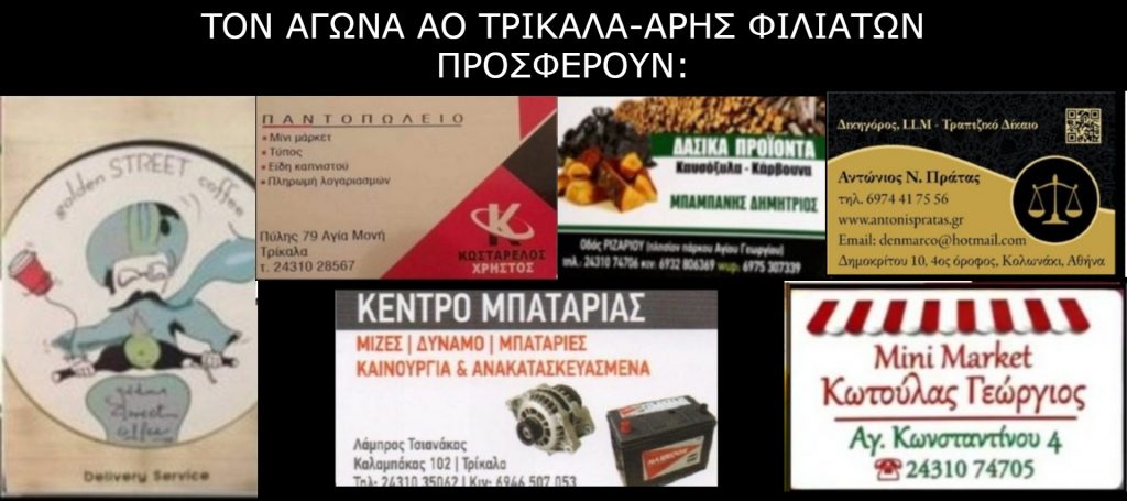 Παρακολουθείστε τον πολύ ενδιαφέροντα και οριακό αυτό αγώνα του ΑΟ Τρίκαλα, στο παρακάτω Link μέσω του Trikalascore: