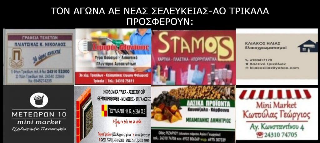 Σήμερα στις 3μ.μ. ο ΑΟ Τρίκαλα φιλοξενείται από την ΑΕ Νέας Σελεύκειας για την 26η και τελευταία αγωνιστική στον 3ο όμιλο της Γ’ Εθνικής κατηγορίας.