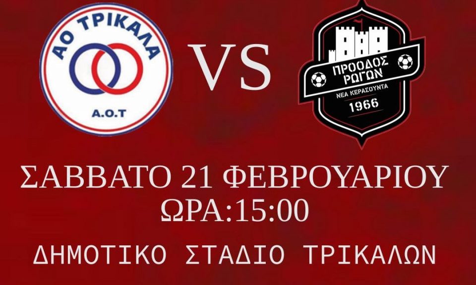 Το μεσημέρι του Σαββάτου και ώρα 3μ.μ. στο δημοτικό στάδιο Τρικάλων ο ΑΟ Τρίκαλα υποδέχεται την Πρόοδο Ρωγών για την 25η και προτελευταία αγωνιστική της πρώτης φάσης , στον 3ο όμιλο της Γ’ Εθνικής κατηγορίας.