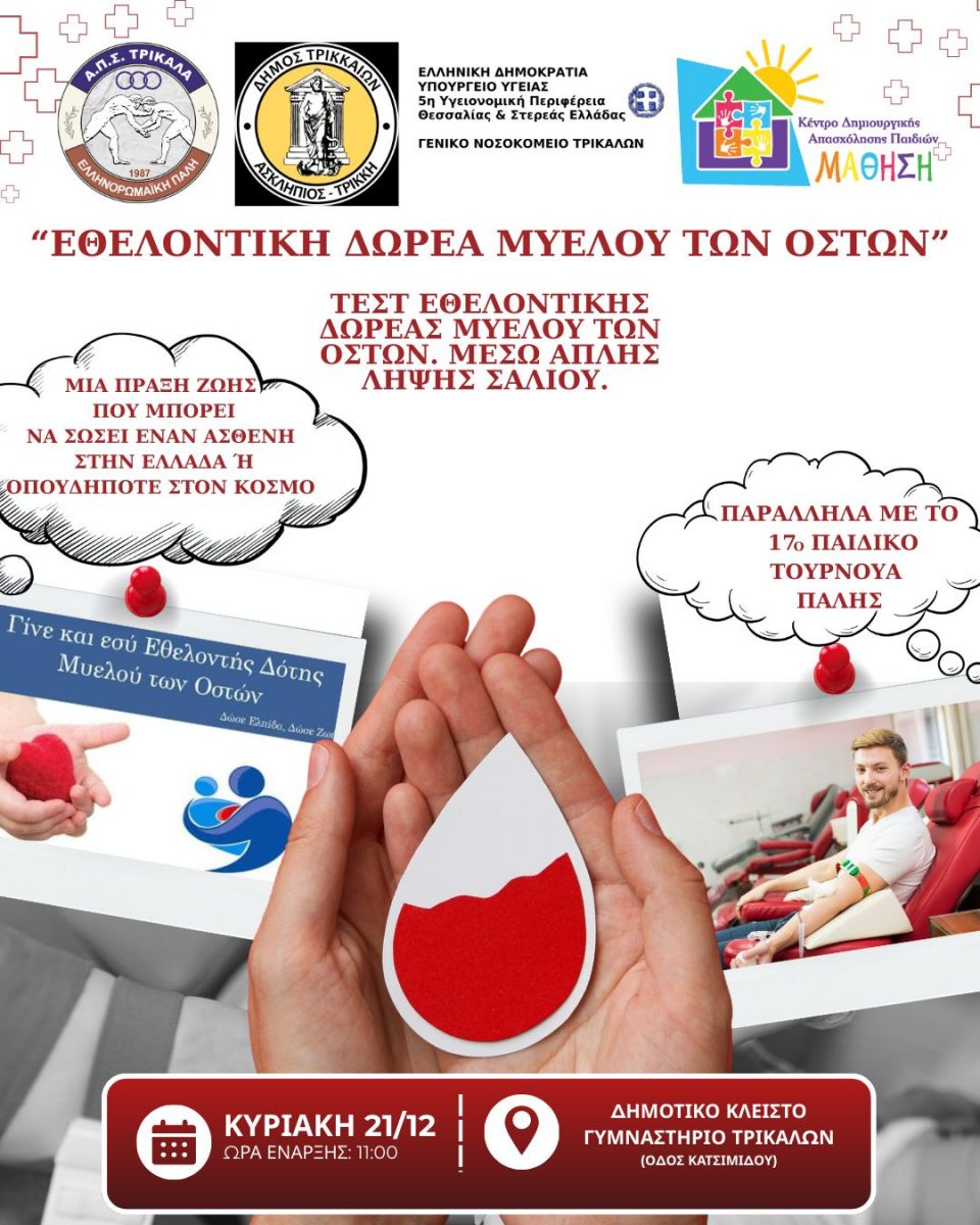 ΑΠΣ Τρίκαλα :«Γίνε ο Ήρωας Κάποιου», εκδήλωση αφιερωμένη στην ενημέρωση και εγγραφή νέων εθελοντών δοτών μυελού των οστών.