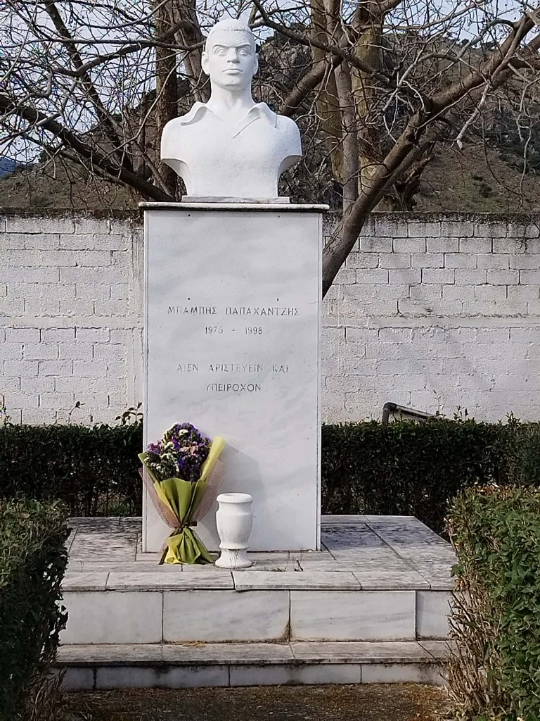 ‘Επειτα οι παίκτες των Μετεώρων πήγαν λίγο πιο δίπλα στο μνημείο που έχει στηθεί από τους ανθρώπους του Διγενή στη μνήμη του Μπάμπη Παπαχατζή, του νεαρού ποδοσφαιριστή της ομάδας που έφυγε πρόωρα από τη ζωή πριν αρκετά χρόνια και άφησαν εκεί λουλούδια.