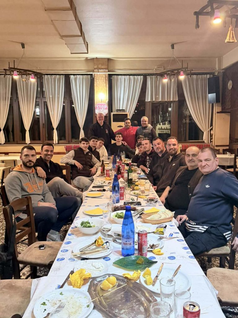 Το τραπέζι έγινε σε ένα ευχάριστο και φιλικό περιβάλλον και σε οικογενειακό κλίμα, παρουσία όλων των παικτών και της τεχνικής ηγεσίας, ενώ στο χώρο βρέθηκε και σύσσωμη η διοίκηση προεξάρχοντος του προέδρου Θανάση Λούκα.