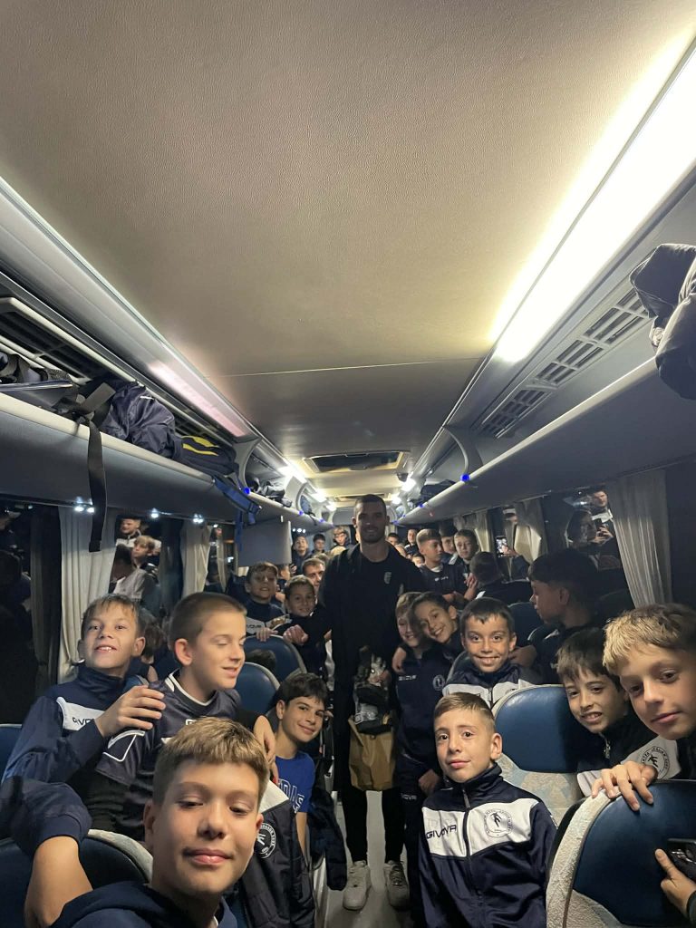 Οι εκπλήξεις δεν τελείωσαν εδώ , καθώς φτάνοντας στο λεωφορείο τα παιδιά μας είχαν την τιμή να συνομιλήσουν με τον βασικό τερματοφύλακα του ΠΑΟΚ Αντώνη Τσιφτσή όπου συνομίλησε με τα παιδιά και έβγαλε αναμνηστικές φωτογραφίες.