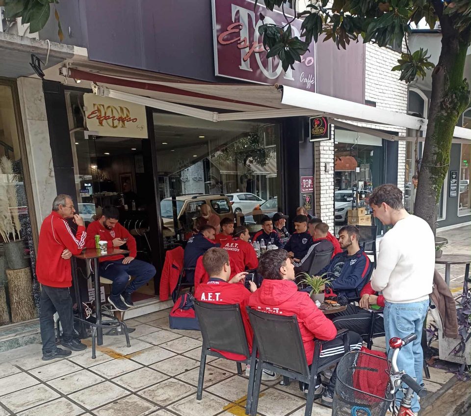 Παίκτες και τεχνική ηγεσία, συνοδευόμενοι από το Χρήστο Παππά, την ψυχή της ομάδας, απόλαυσαν το καφεδάκι τους σε όμορφο κλίμα, ενώ τα πειράγματα έδιναν και έπαιρναν.