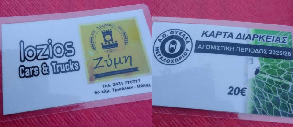 Η τιμή τους είναι στα 20 ευρώ, ενώ επάνω αναγράφονται οι δύο χορηγοί των εισιτηρίων: η Τρικαλινή Ζύμη και Lozios Cars & Trucks.