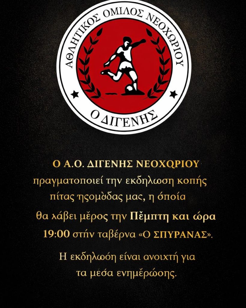 Kοπή πίτας για το Διγενή Νεοχωρίου, ανοιχτή για τα ΜΜΕ