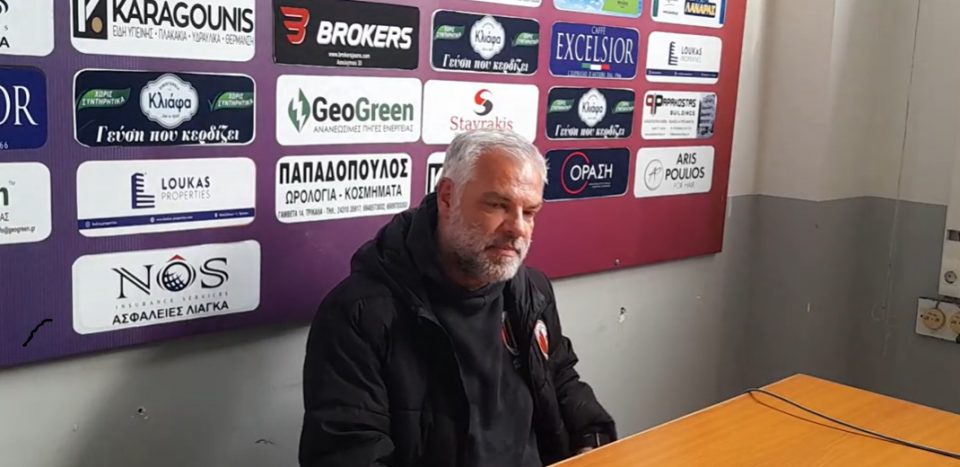 Αφού έπλεξε το εγκώμιο των παικτών του, αλλά και του ΑΟ Τρίκαλα λέγοντας ότι είναι μία ομάδα με μεγάλη δυναμική και πολύ κόσμο, έσπευσε να αφιερώσει τη νίκη στη μάνα του, η οποία έφυγε από τη ζωή και όπως αποκάλυψε κατά τη διάρκεια του αγώνα κάποιοι έβριζαν συνεχώς, καυτηριάζοντας το συγκεκριμένο αρνητικό περιστατικό.