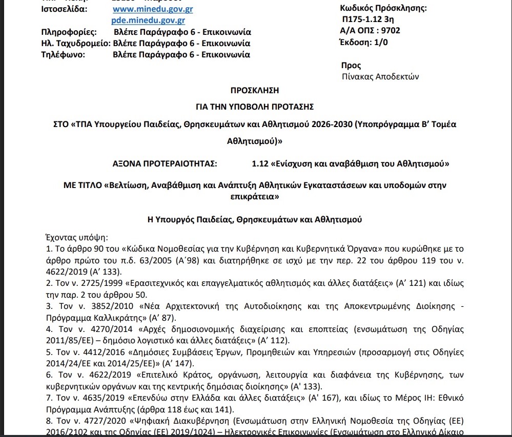 Αθλητισμού πριν 9 μήνες (Ιούλιος 2025), αποσπώντας τη σχετική δέσμευση. Η πρόσκληση