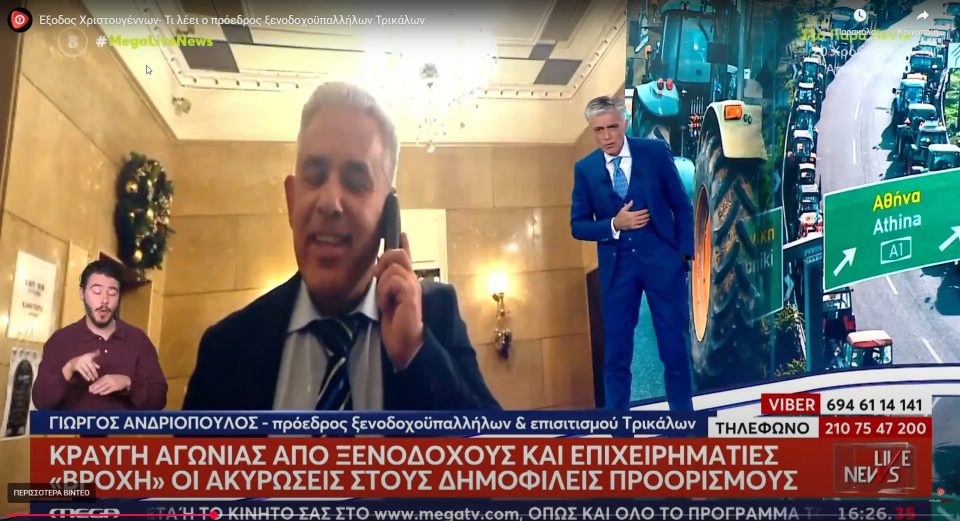 Στην ερώτηση απάντησε στην ίδια εκπομπή η παρέμβαση του προέδρου των ξενοδόχων και επισιτιστών Τρικάλων, Γιώργου Ανδριόπουλου, ο οποίος μίλησε για πτώση της τάξης του 50% τις τελευταίες ημέρες, περιγράφοντας μια εικόνα μίζερη και αποθαρρυντική για την τοπική αγορά, σε μια περίοδο που παραδοσιακά αποτελεί «ανάσα» για την οικονομία της περιοχής, ενώ στο τέλος μίλησε και για εικόνα «χωριού» της πόλης μας!