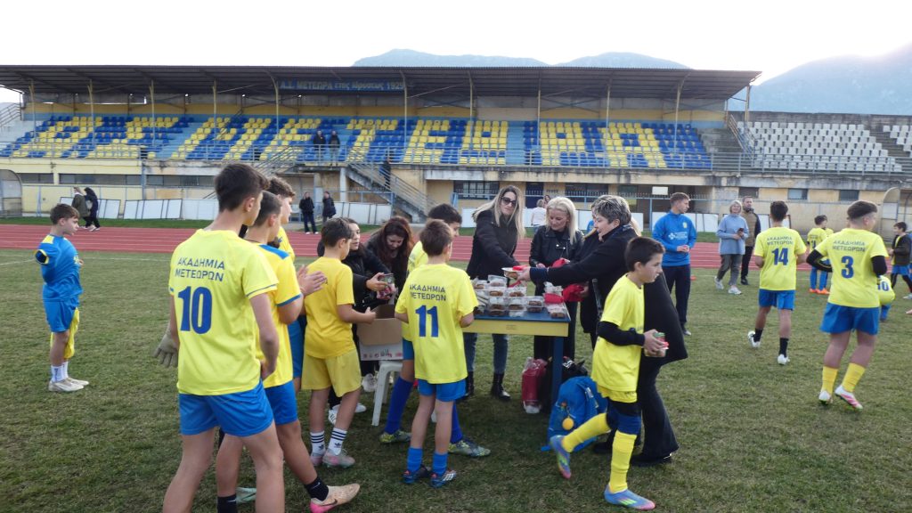 Μια όμορφη έκπληξη περίμενε σήμερα τα παιδιά της Ακαδημίας μας καθώς η διοίκηση του ΑΣ Μετέωρα διοργάνωσε μια μικρή γιορτή ενόψει των εορτών των Χριστουγέννων. Σε όλα τα παιδιά μοιράστηκαν Χριστουγεννιάτικα γλυκά με τις ευχές όλων για καλές γιορτές. Είχε προηγηθεί η φωτογράφιση όλων των τμημάτων για το ημερολόγιο της Ακαδημίας που θα κυκλοφορήσει σε λίγες ημέρες.