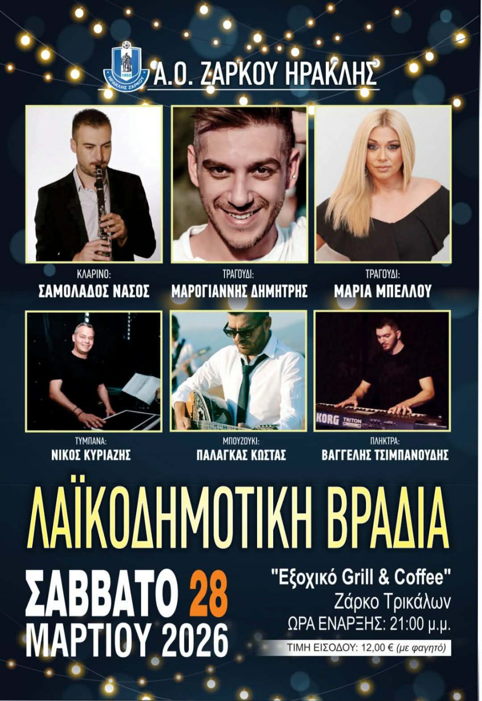 Α.Ο. Ζάρκου ΗΡΑΚΛΗΣ σας προσκαλεί σε μια μεγάλη μουσική βραδιά , απόψε Σάββατο 28 Μαρτίου στο «Εξοχικό Grill & Coffee».