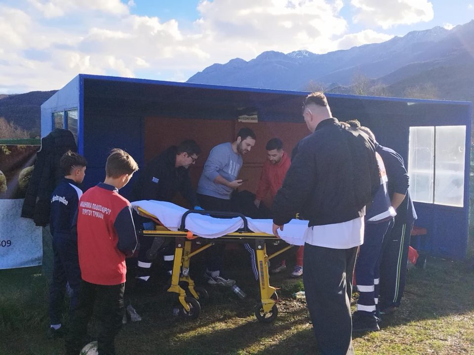 Αμέσως ο γιατρός του αγώνα κάλεσε ασθενοφόρο, το οποίο ήρθε και παρέλαβε τον παίκτη, μεταφέροντάς τον στο ΓΝ Τρικάλων και όπως μάθαμε ευτυχώς δεν ήταν κάτι ανησυχητικό, απλά η διακομιδή του έγινε για προληπτικούς λόγους.