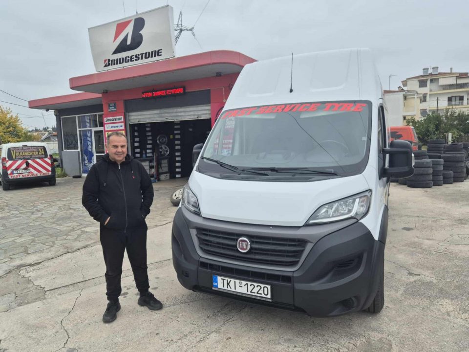 Με το πλήρως εξοπλισμένο κινητό βουλκανιζατέρ που έχει κατασκευάσει, βρίσκεται σε 24ωρη ετοιμότητα, προσφέροντας υπηρεσίες 24 ώρες το 24ωρο, όπου κι αν χρειαστεί, σε ολόκληρη την περιοχή.