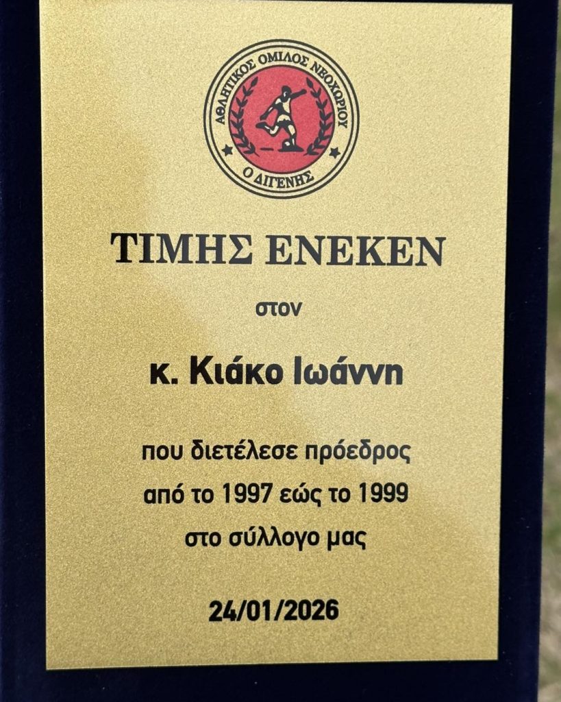 Παράλληλα, η ομάδα του Διγενή απένειμε τιμητική πλακέτα στον κ. Γιάννη Κιάκο, για την προσφορά του στην ομάδα, καθώς διετέλεσε πρόεδρος του σωματείου από το 1997 έως το 1999.