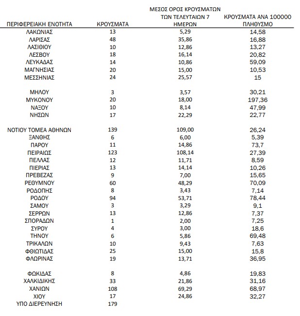Όπως κάθε μέρα, έτσι και σήμερα η Αττική κατακτά την αρνητική πρωτιά των κρουσμάτων. Την ίδια στιγμή, «πονοκέφαλο» στους ειδικούς προκαλούν αρκετές ακόμα περιοχές της Ελλάδας.
