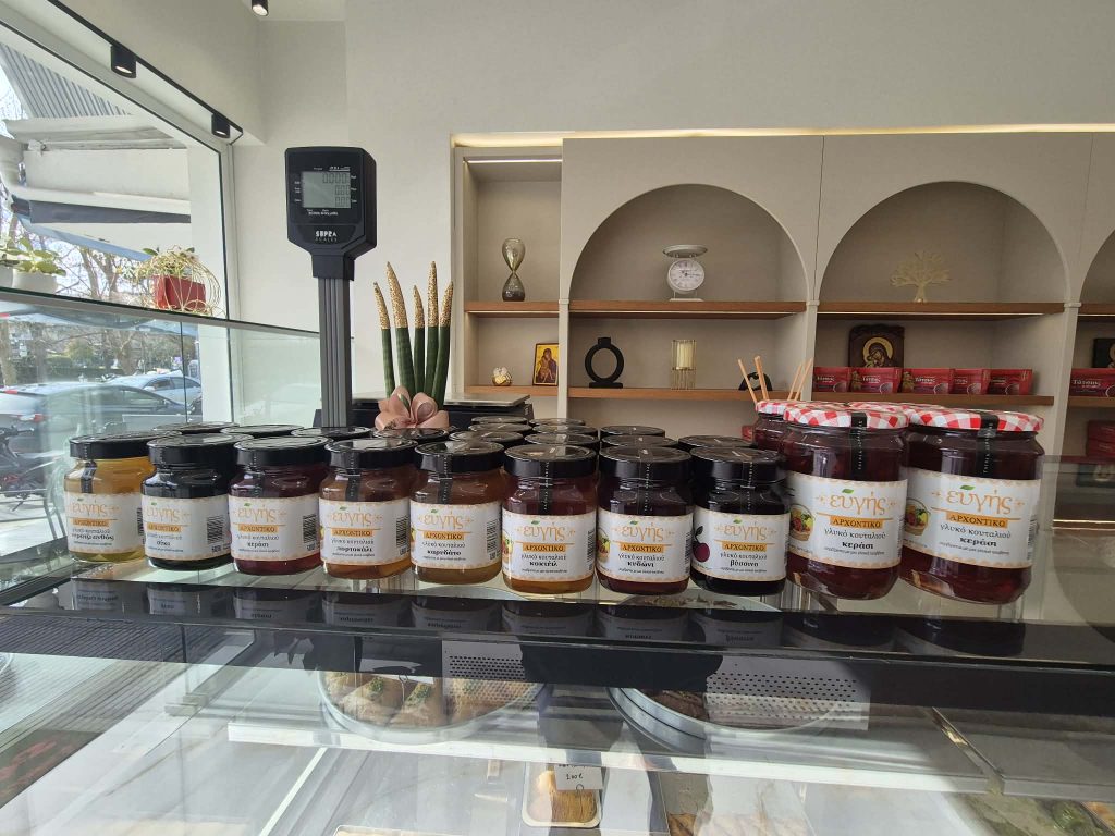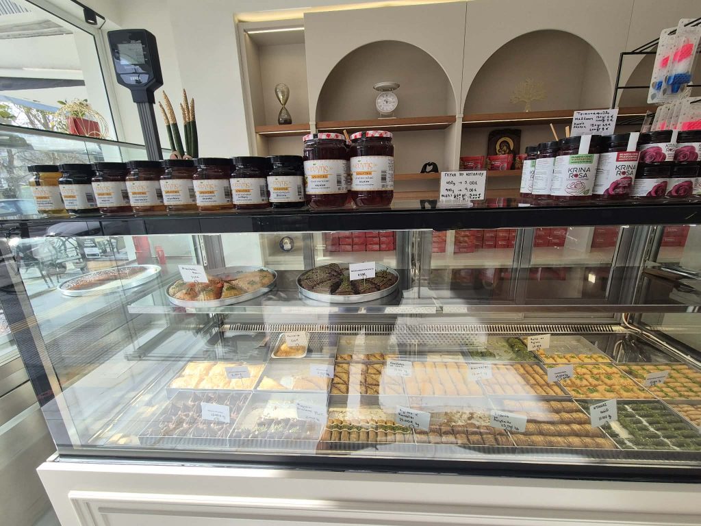 Τα σιροπιαστά του καταστήματος αποτελούν πραγματικό πειρασμό. Κανταΐφι, γαλακτομπούρεκο, σαραγλί, εκμέκ και πολλές ακόμη επιλογές παρασκευάζονται καθημερινά με μεράκι και αγνά υλικά, διατηρώντας την αυθεντική γεύση της παραδοσιακής ελληνικής ζαχαροπλαστικής.