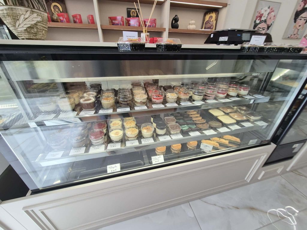 Οι λάτρεις της κλασικής ζαχαροπλαστικής βρίσκουν εδώ εξαιρετικές πάστες, φρεσκοφτιαγμένα προφιτερόλ με πλούσια σοκολάτα και μοναδική υφή, αλλά και τούρτες για κάθε περίσταση — από γενέθλια και βαφτίσεις μέχρι γάμους και επαγγελματικές εκδηλώσεις, πάντα με δυνατότητα προσαρμογής στις επιθυμίες του πελάτη.